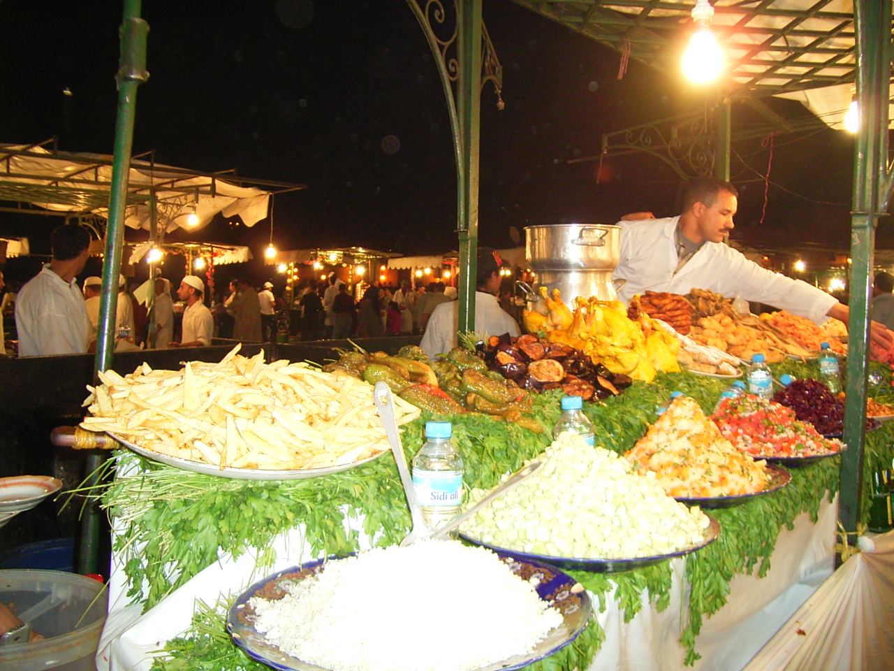 モロッコは非常に暑い国で、常にくたびれていたため、口にしたもので一番美味しいと思ったのが「水」でした。クスクスは味は美味しいと思ったのですが、口の中の水分を全て奪われるため、すぐに水が必要になりました。一度だけ高めのレストランに入りましたが、高級なレストランの方が香辛料が沢山使われており、私には合わない感じでした。